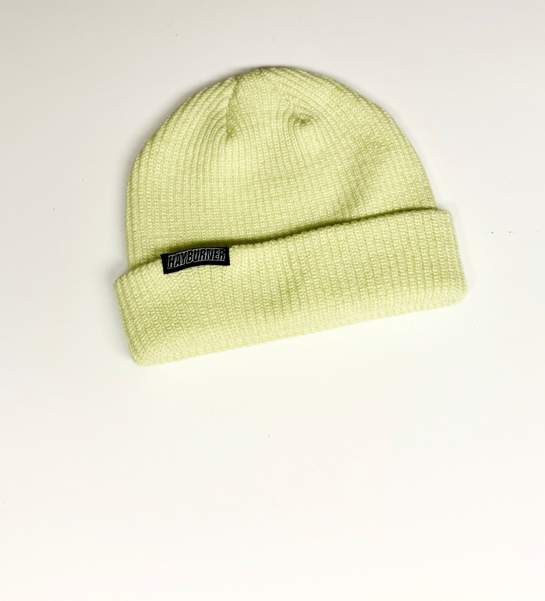**NEW** Lime fisherman style wide knit beanie with a carefully subtle sewn in label.